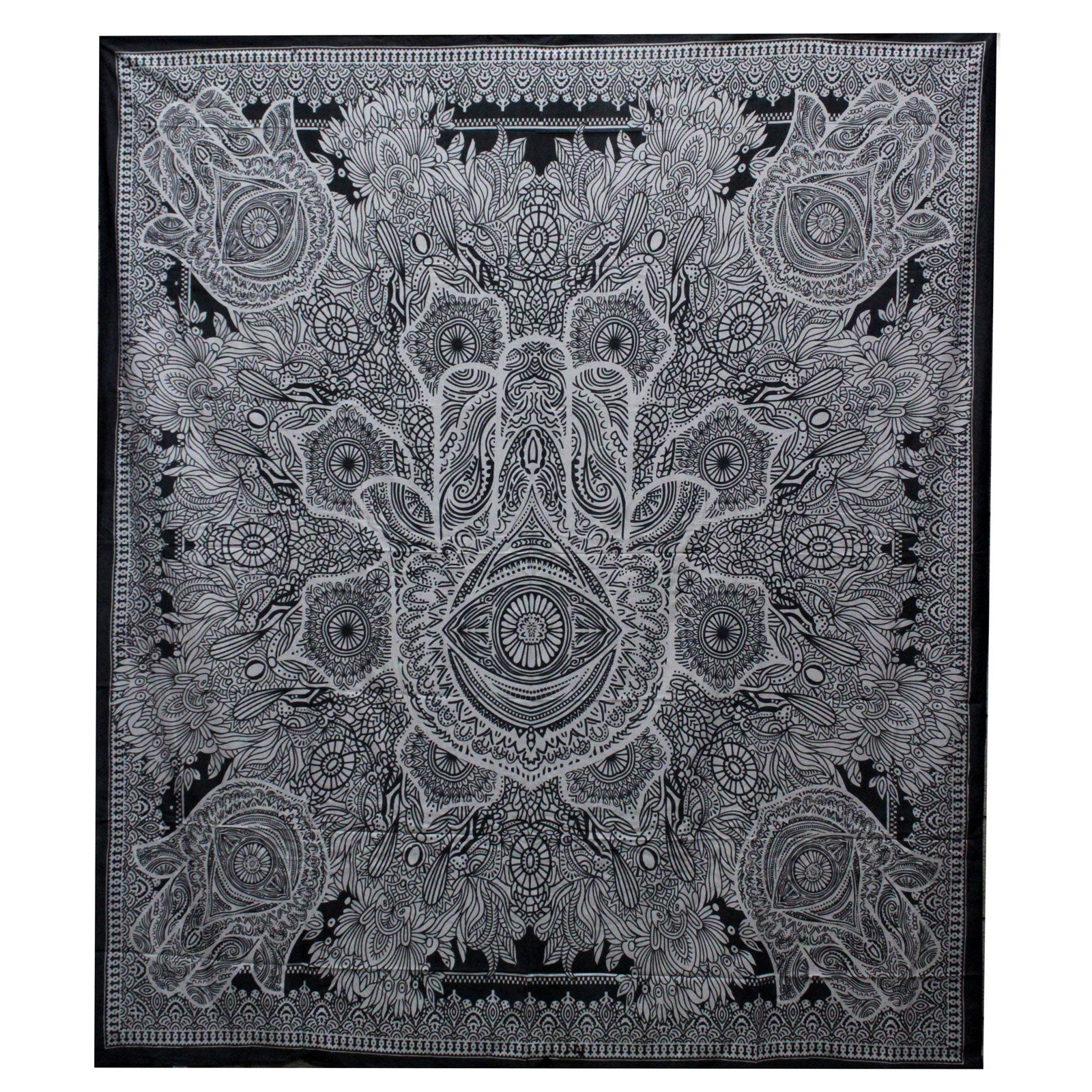 B&W Double Cotton Bedspread + Wall Hanging - Hamsa