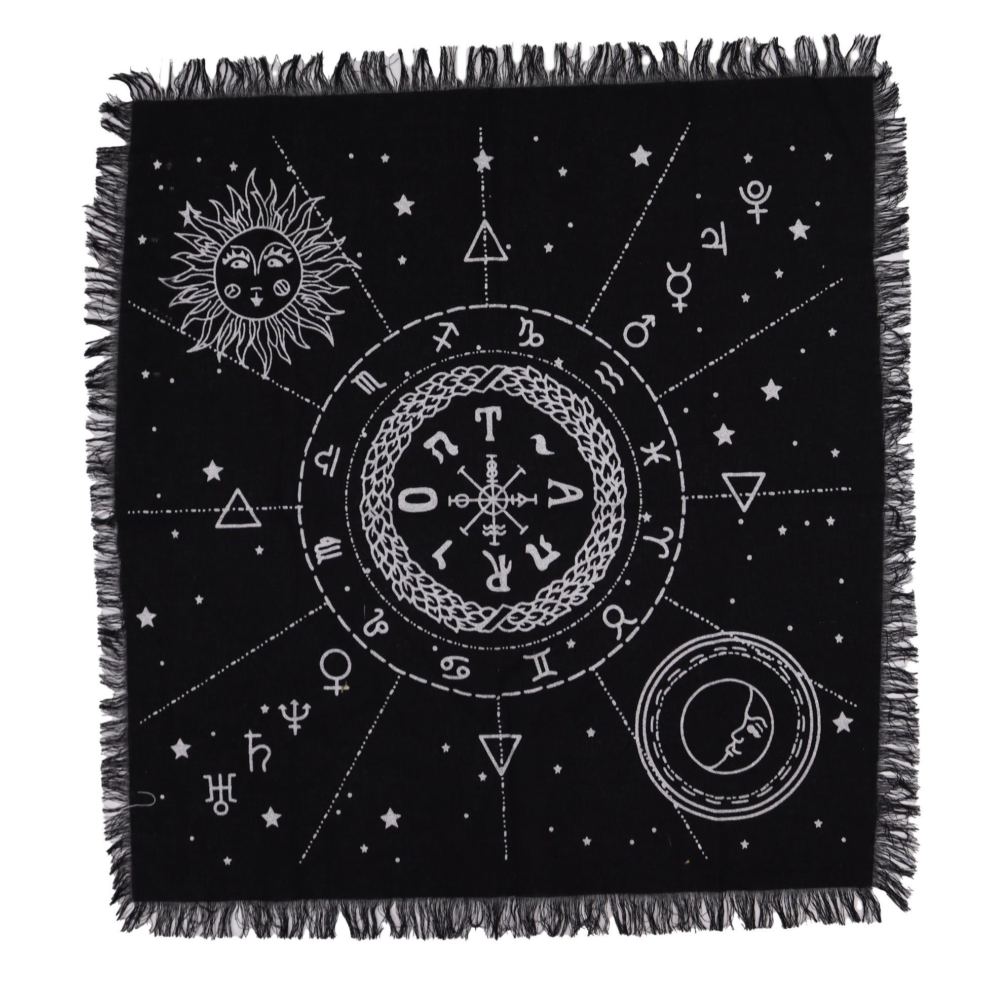 Esoteric Fringed Altar Cloth - Moon & Sun Chart