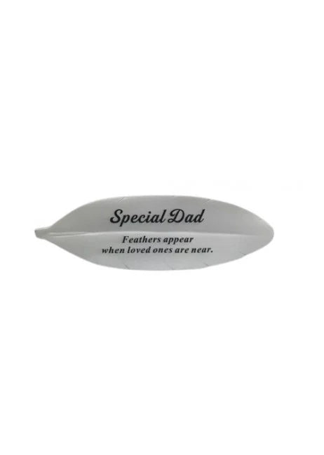 Each feather includes the phrase: “Special Dad – Feathers appear when loved ones are near”, offering a gentle reminder of a loved one's continued presence. -