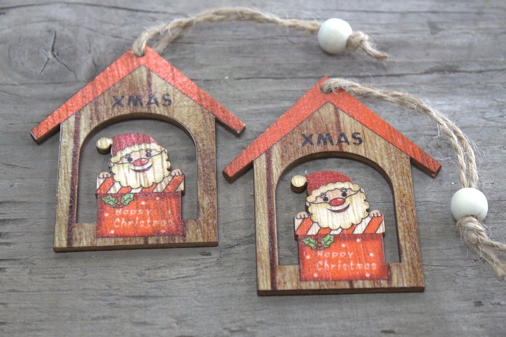 Christmas Wooden Craft Decoration - Xmas Santa Gift (Pack of 2)
